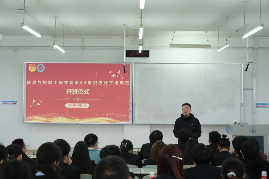 为进一步强化对入党积极分子的培养、教育与考察工作,全面提升入党积极分子的思想政治素养,引导信控学子端正入党动机,更好地在集体中发挥积极作用,10月11日,信息与控制工程学院在三教405教室举行第六十四期入党积极分子培训班开班仪式。